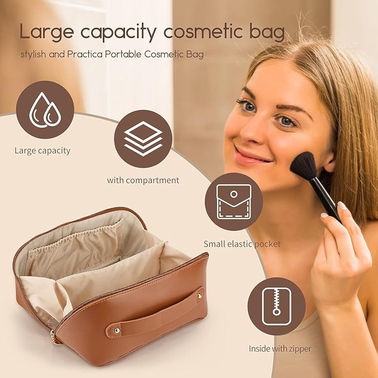 Jedinstven dizajn: kozmetička torba ima ugrađenu površinu za četkicu, četiri elastična džepa sa strane i unutrašnji džep sa elastičnim kaiševima koji mogu držati kozmetiku ili bočice uspravno. Više pregrada i pregrada za četkice za šminkanje održavaju vaše alate za šminkanje čistima. Dobro ispunjen dizajn za održavanje kompletnog oblika torbe i pruža odličnu zaštitu.