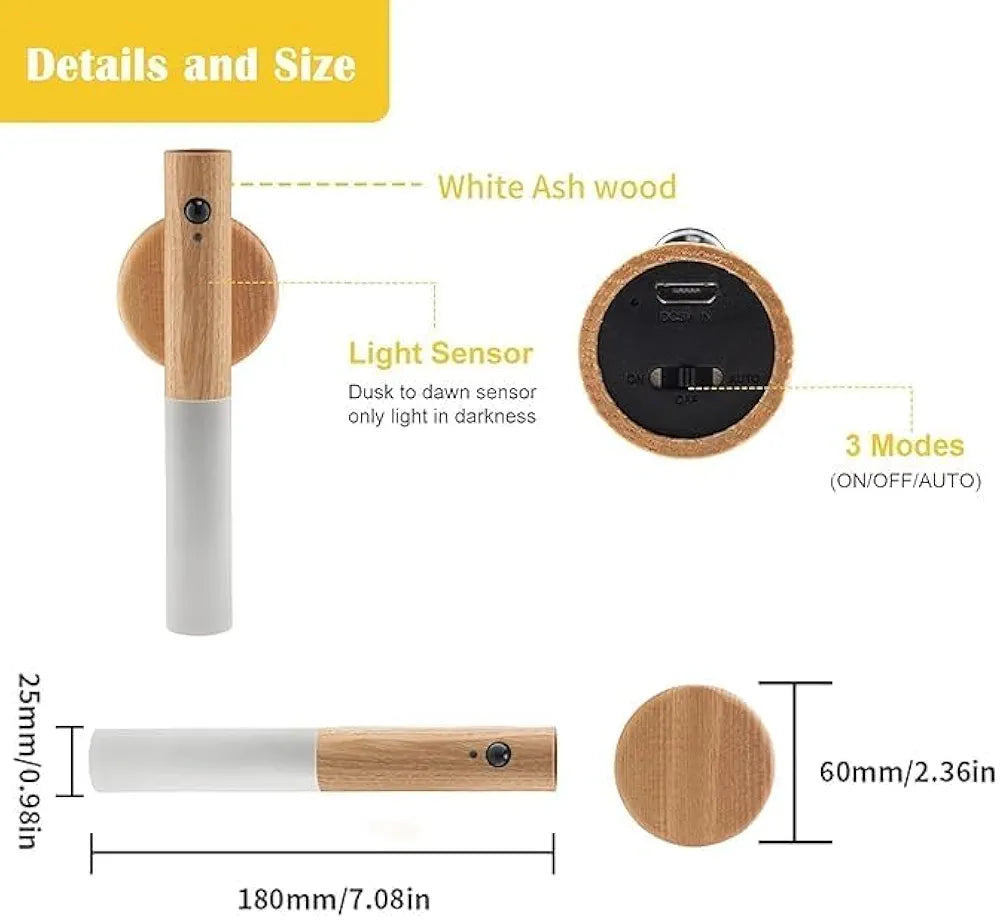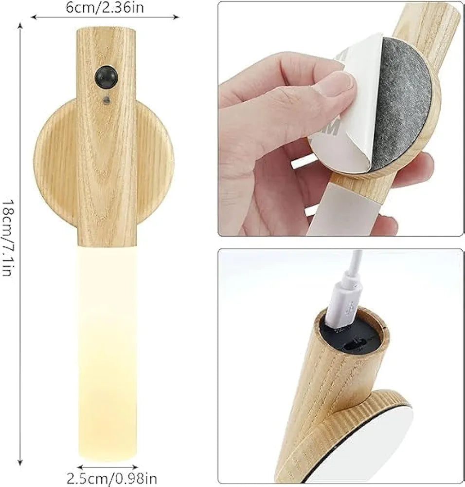 Moderan dizajn USB punjiva drvena zidna lampa sa baterijom, zidna lampa sa baterijom sa senzorom pokretaJednostavan za upotrebu, može se koristiti kao unutrašnje zidno svetlo, noćno svetlo, svetlo ormarića, stolna lampa, svetlo za hitne slučajeve. za spavaće sobe, dečije sobe, dnevne sobe, trpezarije, stepeništa, hodnike, terase, čekaonice ili kancelarije.
